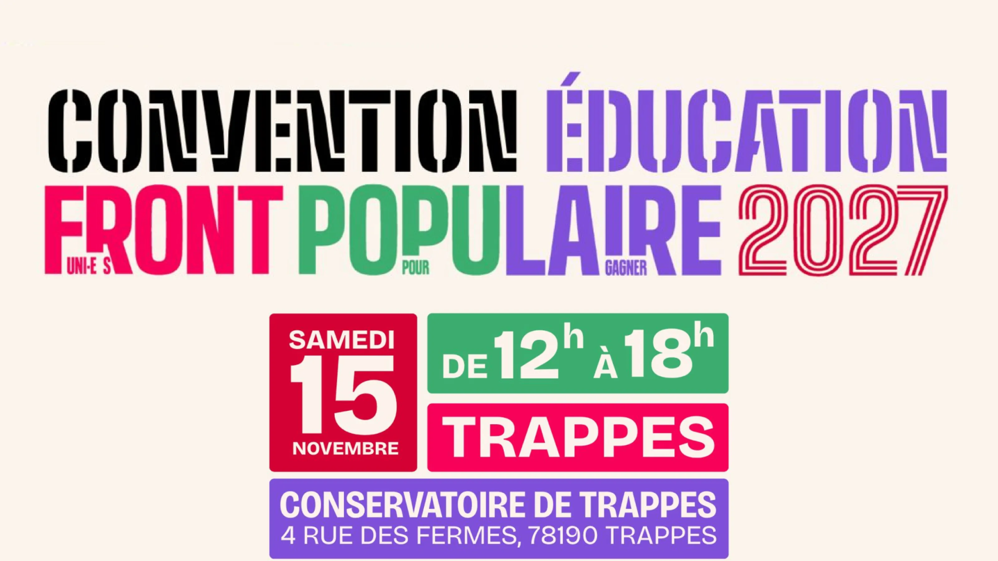 Ce samedi 15 novembre ce tiendra à Trappes la première Convention du Nouveau Front Populaire 2027 ! Une opportunité pour se réunir et réfléchir ensemble autour d'un thème majeur, l'éducation.